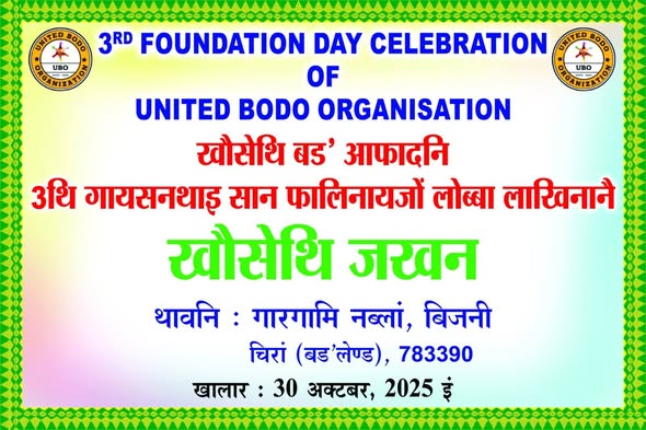 30 अक्ट'बर : खौसेथि बड' आफाद / United Bodo Organization नि 3थि गायसंथाइ सान फालिनाय